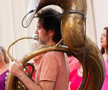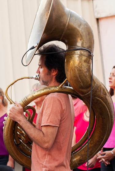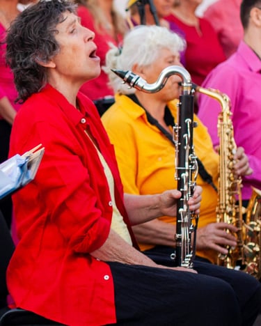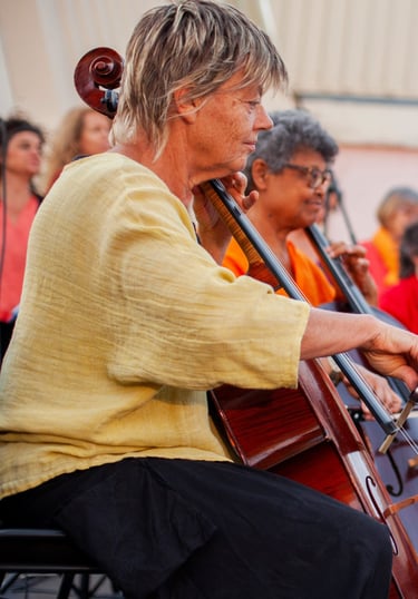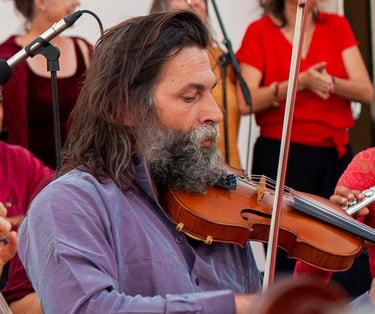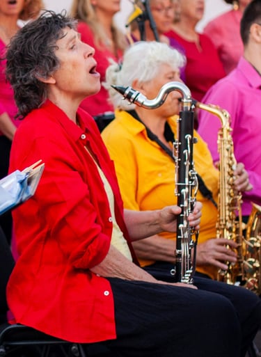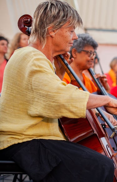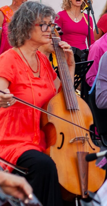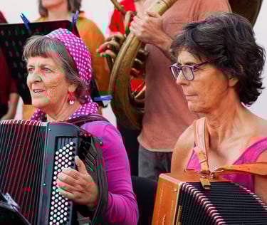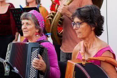 Nico, Christian et Sabine aux violons, Nannette à la viole de gambe, Cécile au violoncelle, Wicki, Catherine et Agnès aux saxos, Françoise à la flûte et clarinette basse, Corinne à la contrebasse, Sylvie, Isabelle et Claude aux accordéons, Françoise à la guitare, Marino aux percussions, Thalie au washboard, Chérif à la derbouka, Jean Marc à la batterie et Amine au piano.